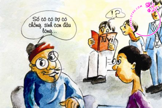 – Còn về “gia cảnh”, về “nhân duyên” thì… “cô có mẹ, mẹ là đàn bà, có cha, cha là đàn ông, cô sẽ có chồng, có chồng sẽ có con, con gái hoặc con trai”… Rõ ràng cái nhà ông thầy bói này chỉ ba hoa, mồm mép, nói những điều ai cũng biết. Tục ngữ ta có câu “thầy bói nói mò”. Ông thầy bói này không chỉ “nói mò” mà nói lăng nhăng, vô vị, thật đáng cười. Đáng cười hơn nữa là giọng nói của thầy.